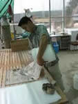 fois les poissons correctement emballés, les poches sont parfaitement calées par étages de 4 ou de 3 suivant leur taille |