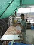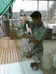 poissons sont pêchés dans des seaux , puis transvasés délicatement dans des poches plastiques |